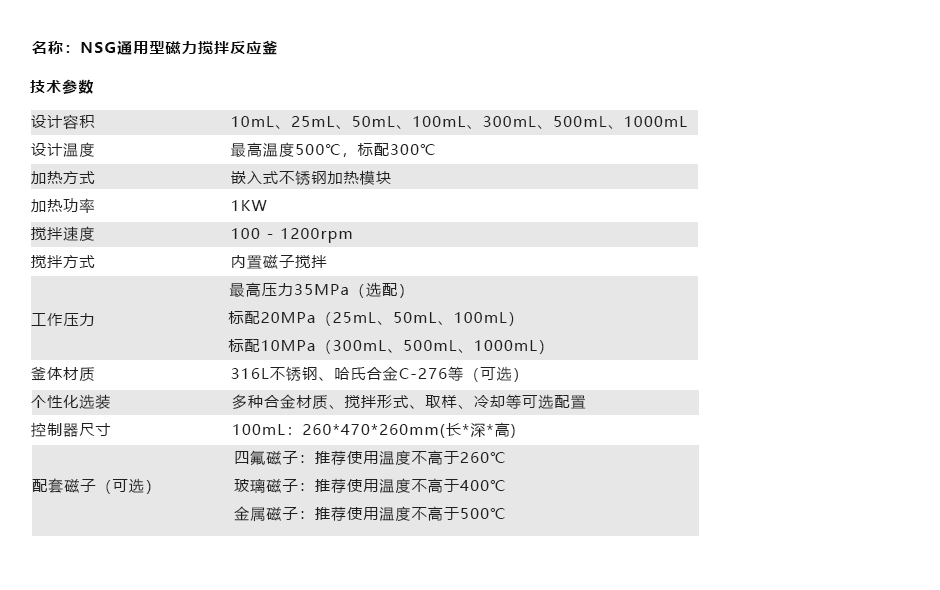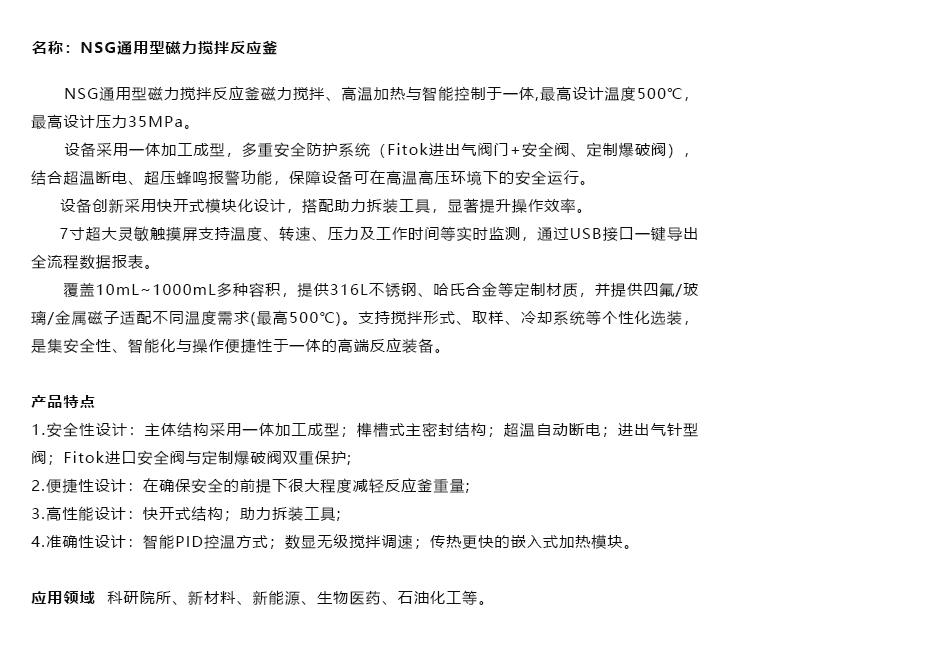 NS系列磁力搅拌反应釜/NSG10-P5-T3-SS1-SV-R-P/安徽科幂