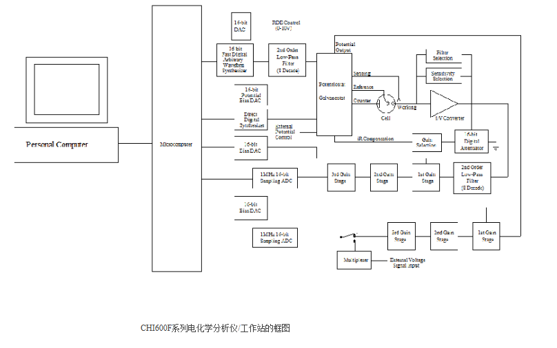 · 旋转电极控制电压输出(CHI630F以上):0-10V 对用于 0-10000 rpm的转速,16位分辨,0.003% 准确度,需要某些旋转电极装置才能工作