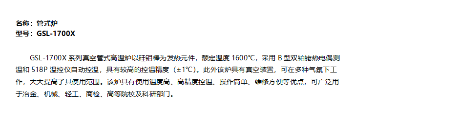 管式炉/GSL-1700X/合肥科晶