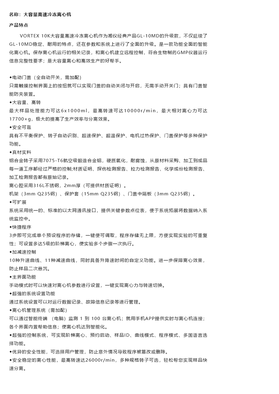大容量高速冷冻离心机/VORTEX 10K/湖南湘仪