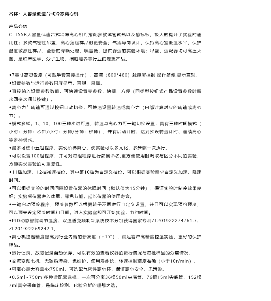 大容量低速台式冷冻离心机/CLT55R/湖南湘仪
