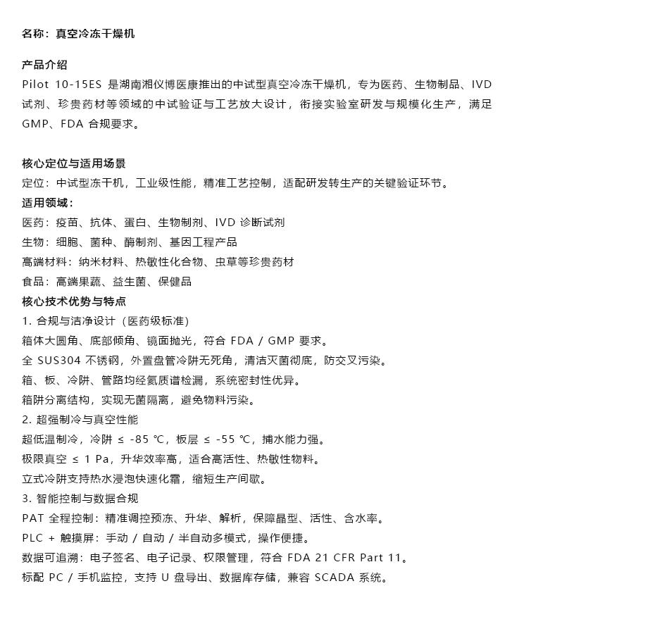 真空冷冻干燥机/Pilot 10-15ES/湖南湘仪