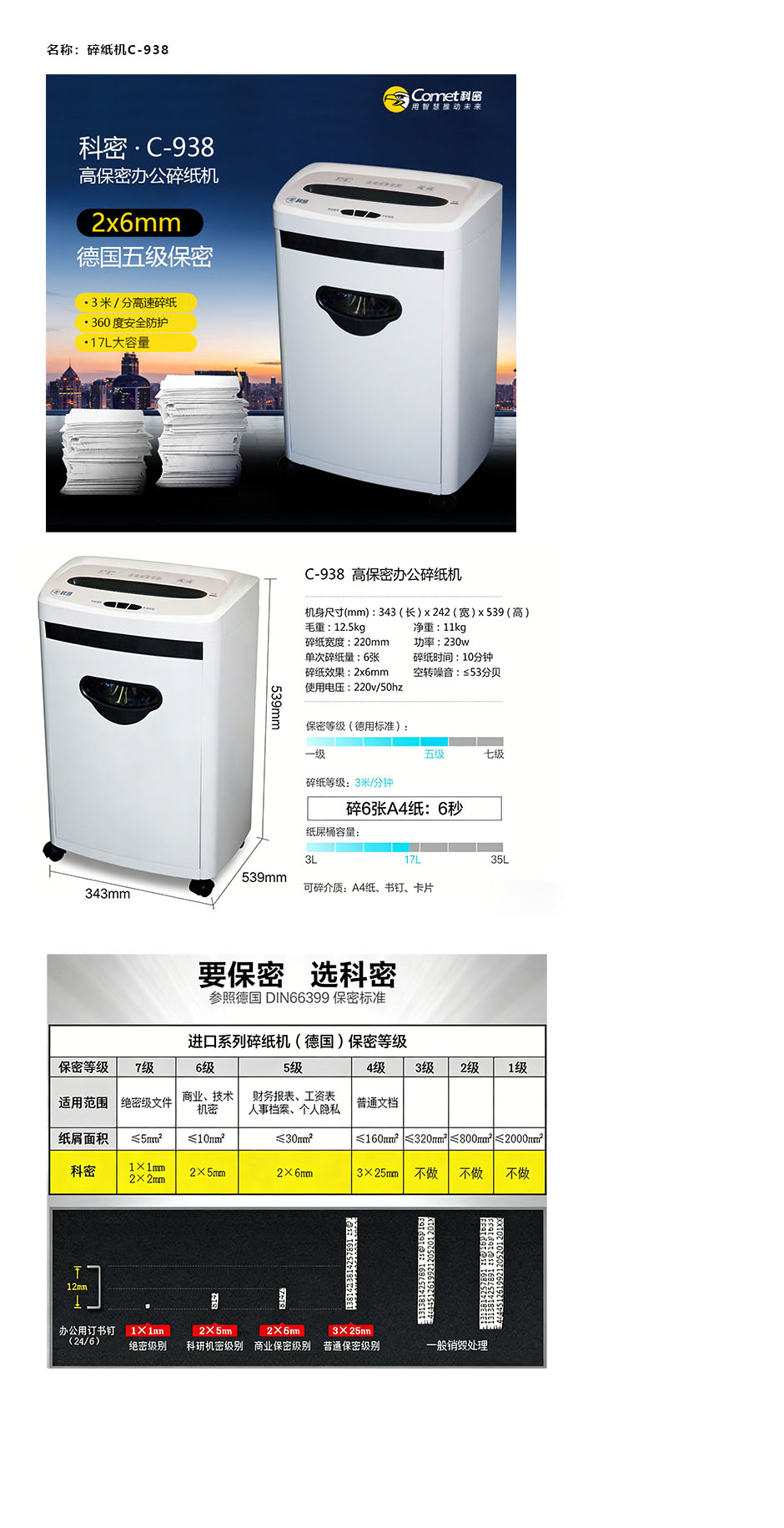 碎纸机/C-938/科密Comet