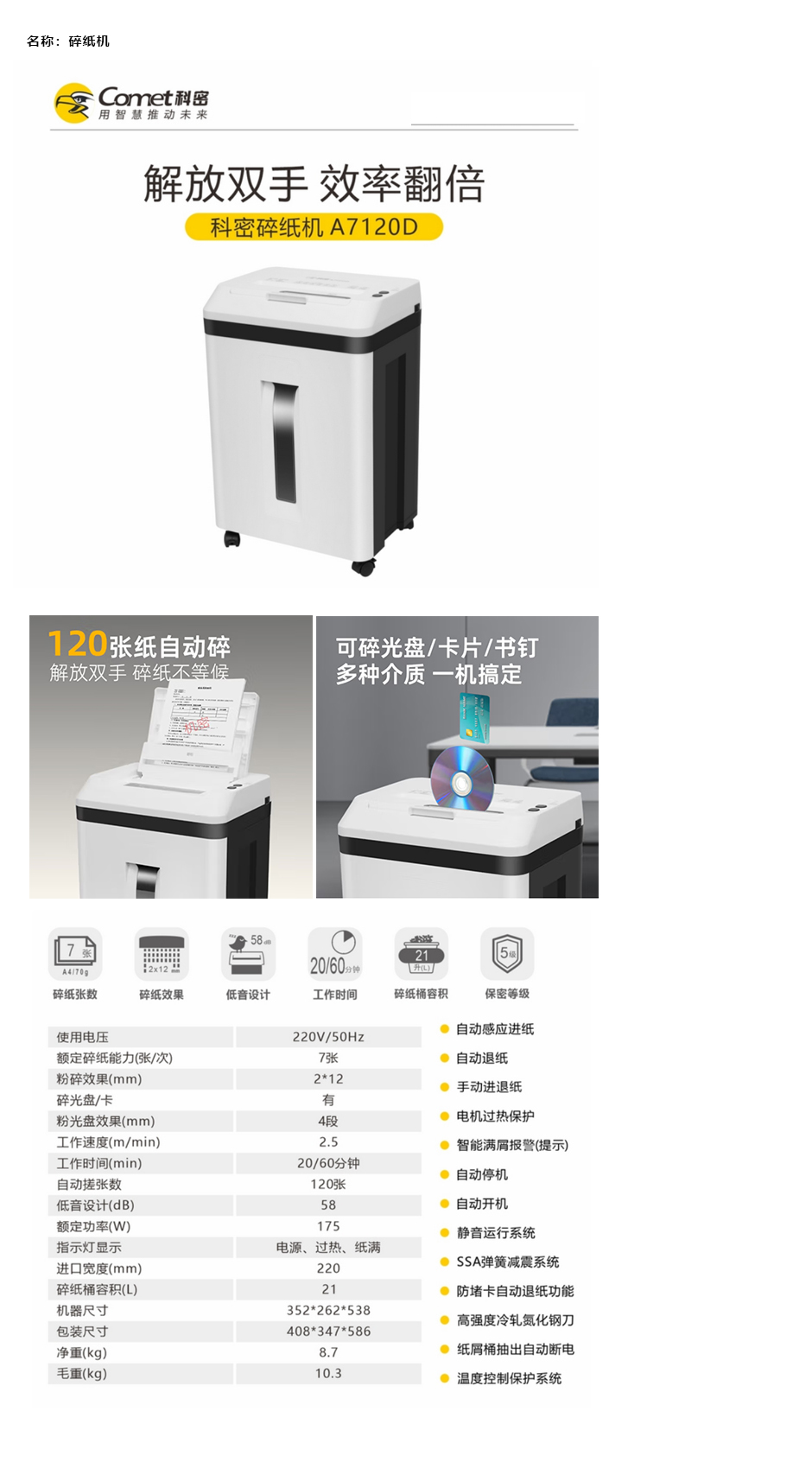 碎纸机/A7120D/科密Comet