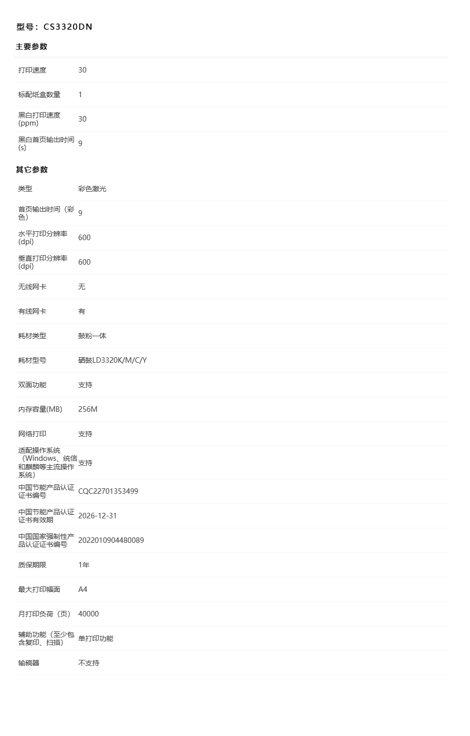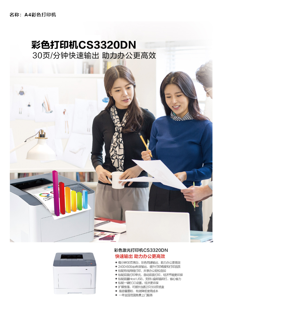 A4彩色打印机/CS3320DN/联想